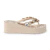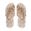 Ψηλές σαγιονάρες με μοτίβο μαγιολίκα σε αποχρώσεις της άμμου. Το επάνω μέρος διαθέτει μεγάλες φωτεινές γεωμετρικές πέτρες σε μια διαβάθμιση από την άμμο σε κρύσταλλο. Η L.A. WATER προσφέρει πολυτέλεια χωρίς να θυσιάζει την άνεση- η μαλακή σόλα από καουτσούκ το καθιστά ιδανικό για ολοήμερη χρήση.
