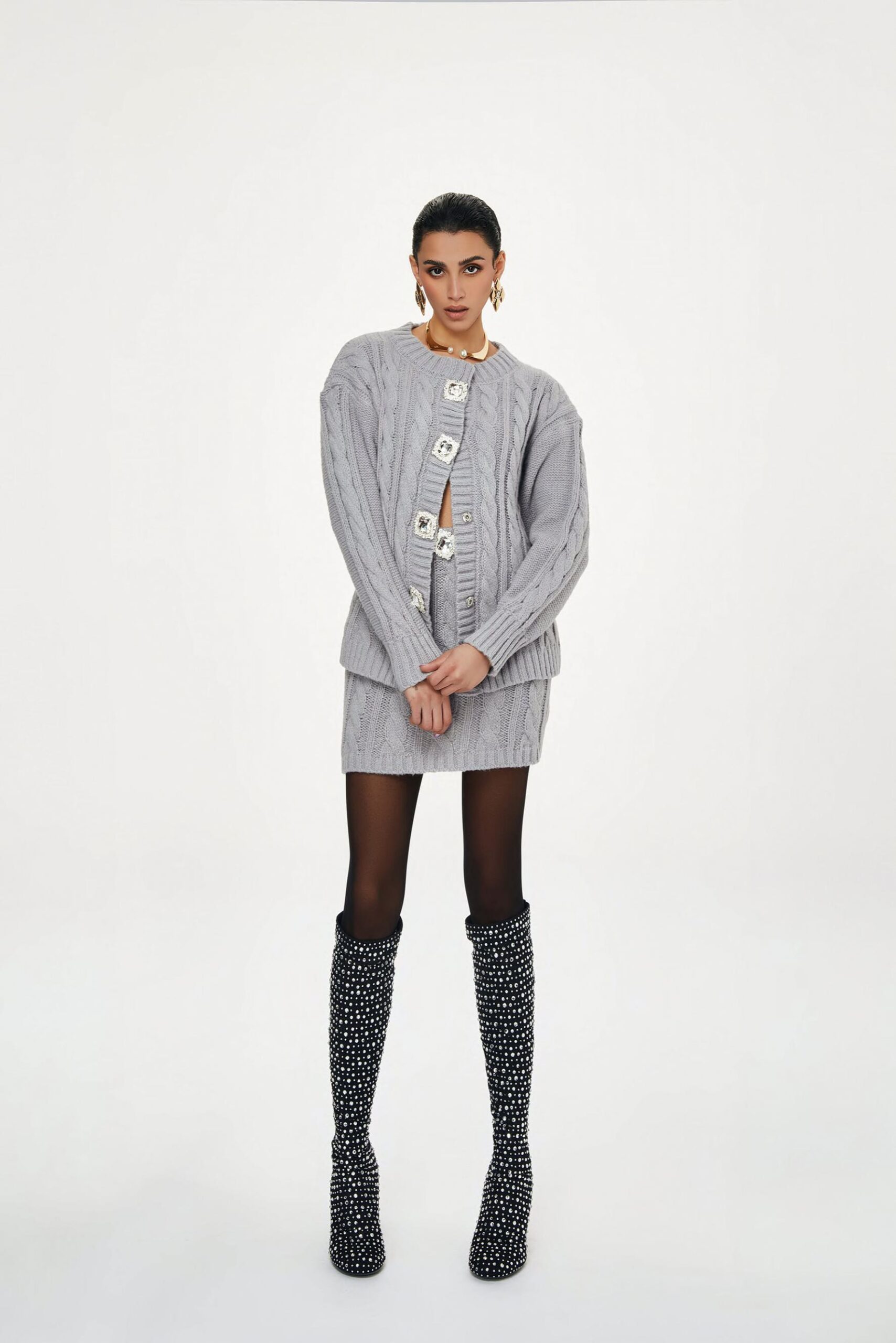• Πλεκτό σετ σε γκρί χρώμα.